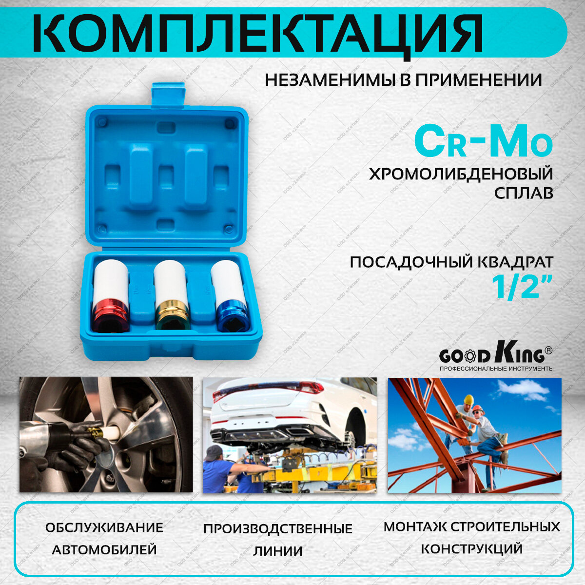 Набор ударных головок для гайковерта GOODKING для литых дисков из Cr-Mo стали, 3 штуки - 17/19/21 интересное: