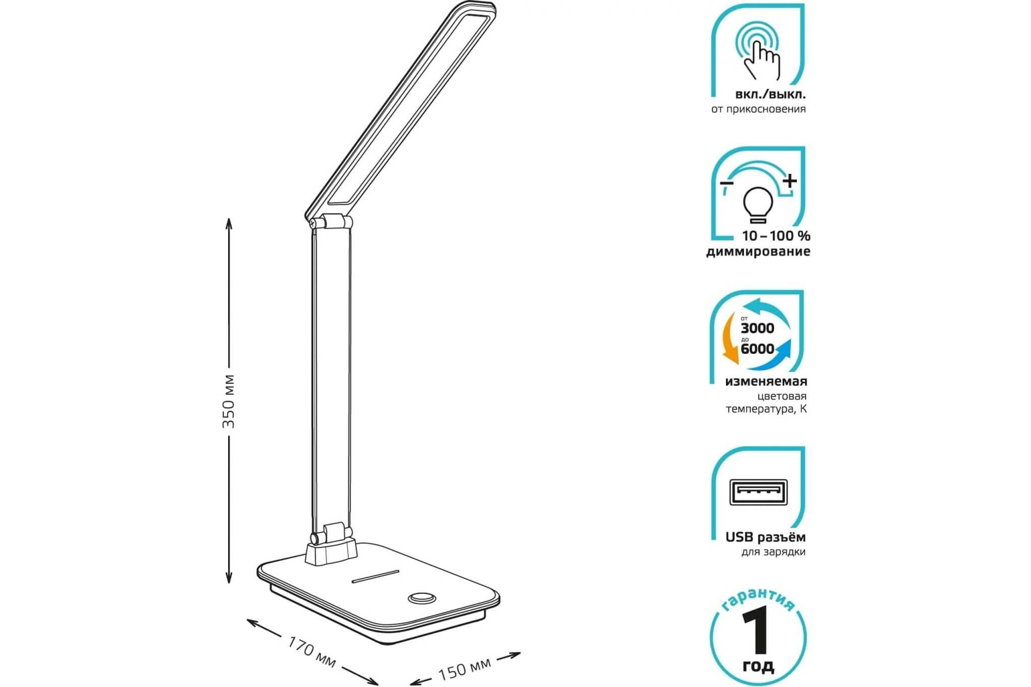 Светильник настольный Gauss модель GTL202 10W 550lm 3000-6000K 170-265V белый диммируемый USB LED 1/8/32