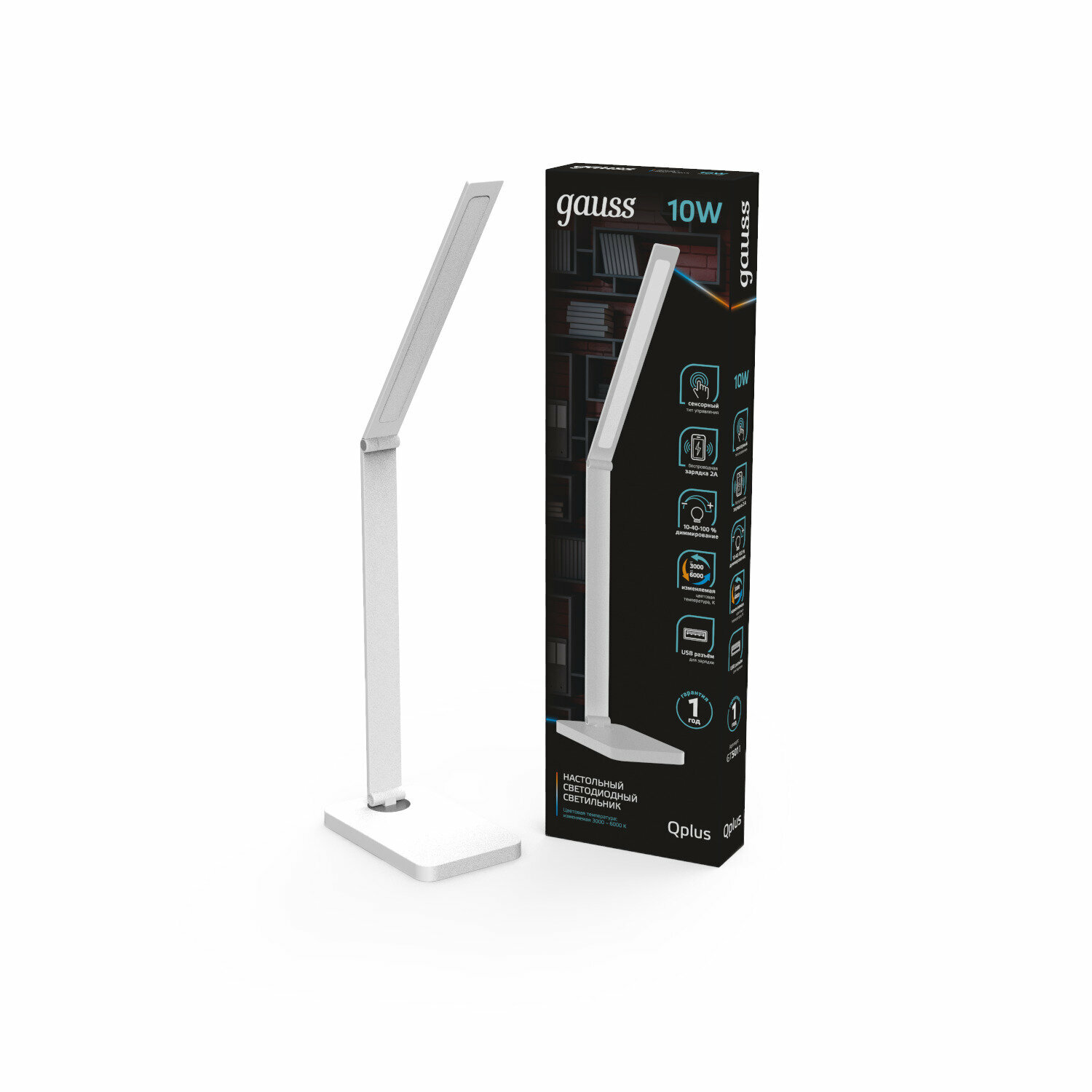 Gauss Светильник настольный Gauss Qplus GTL501 10W 600lm 3000-6000K 170-265V белый диммируемый Qi USB LED