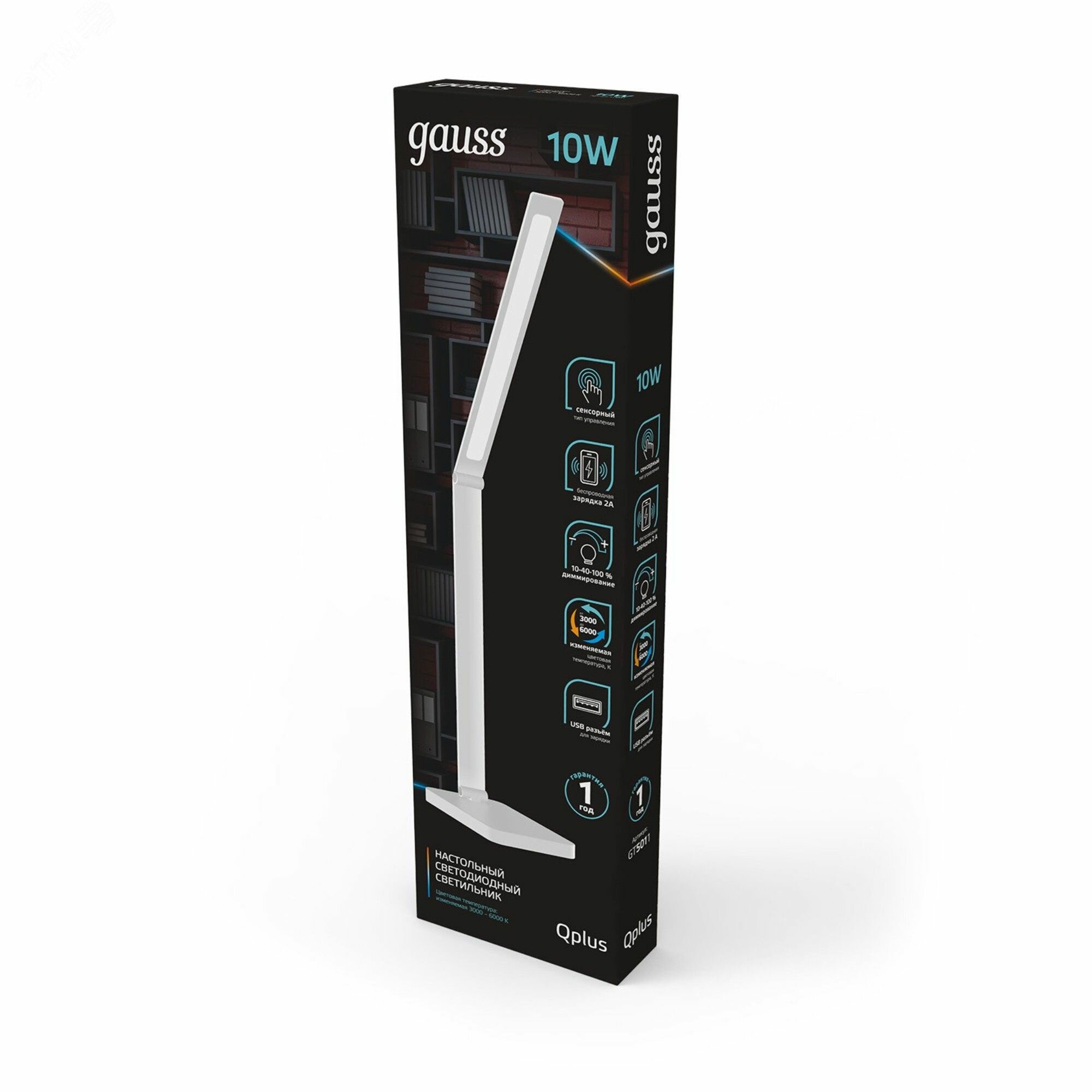 Светильник настольный Gauss Qplus модель GTL501 10W 600lm 3000-6000K 170-265V белый диммируемый Qi USB LED 1/12