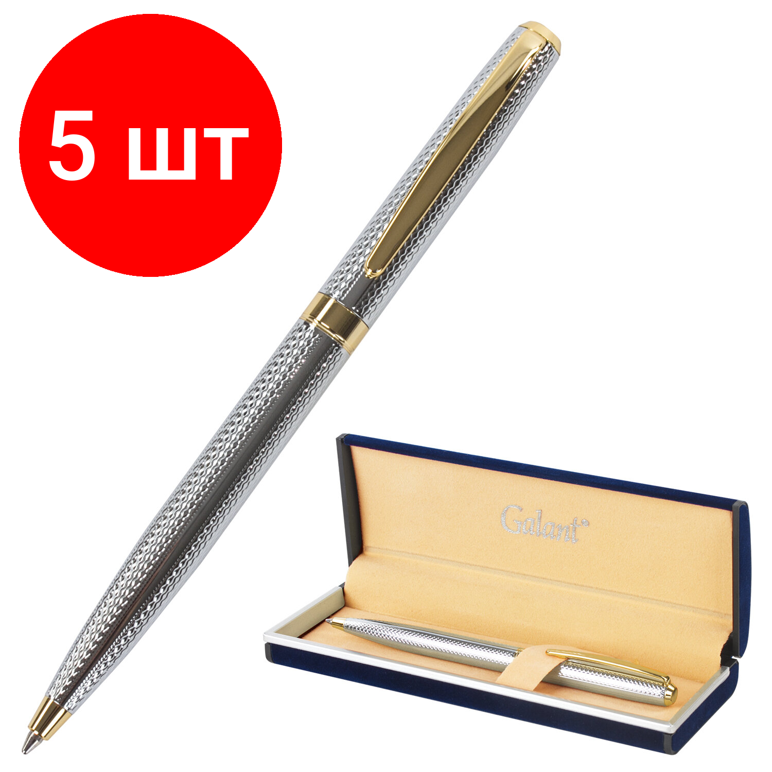 Купить Комплект 5 шт, Ручка подарочная шариковая GALANT "Marburg", корпус серебристый с гравировкой, золотистые детали, пишущий узел 0.7 мм, синяя, 141015