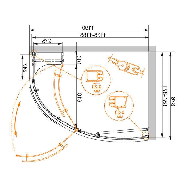 Душевой уголок Belbagno ETNA-AH-22-100/120-C-Cr
