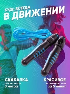 Скакалка StarFit RP-102 со счетчиком, синяя/черная, 3 м