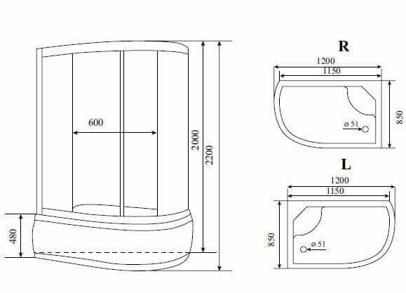 | Комплектация | душевая лейка, зеркало, поддон, полка |