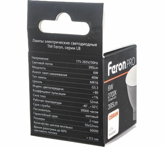 Светодиодная лампа FERON PRO LB-1606 MR16 G5.3 6W 4000K OSRAM LED 38084