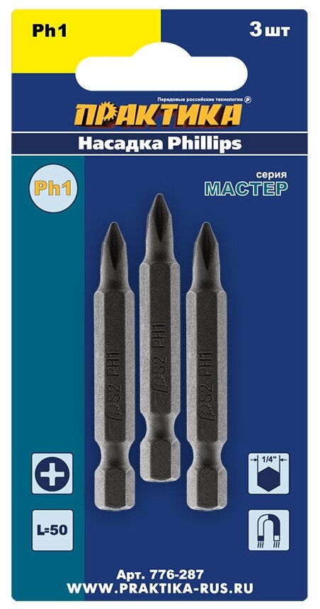 Бита отверточная ПРАКТИКА "Мастер" PH-1 х 50мм (3шт), блистер (776-287) интересное:
