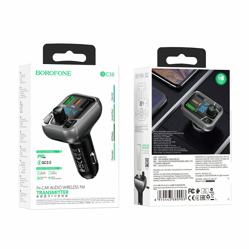 FM трансм BOROFONE BC38 Flash Energy PD20W+QC3.0 Bluetooth громкая связь черный интересное: