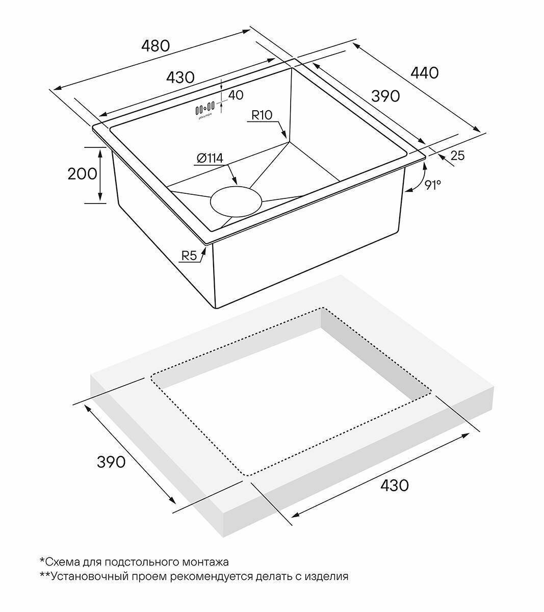 Мойка нержавеющая сталь, MARX, PM214844-BS, брашированная сталь,480x440, Paulmark