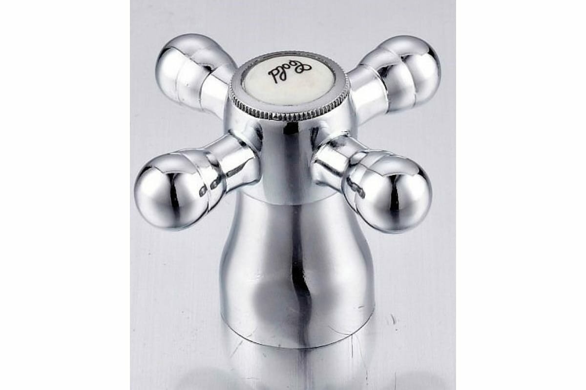 | Комплектация | корпус, узел излива в сборе, 2 вентильные головки в сборе, 2 маховика крест в сборе, гайка крепежная, прокладка |