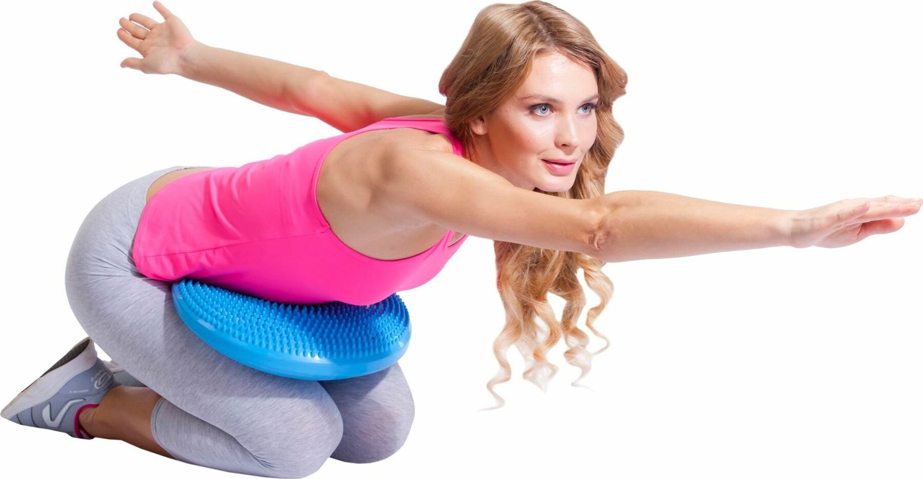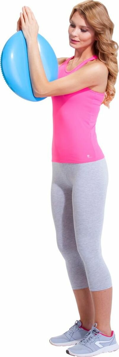 | Минусы: | Отсутствует насос в комплекте, накачан слабо и изменить давление внутри диска не представляется возможным, похоже клапан не работает :( Подойдёт ребёнку или как подушка на стул снимать напряжение при длительной работе. Для упражнений на равновесие взрослому человеку совершенно не годится. |