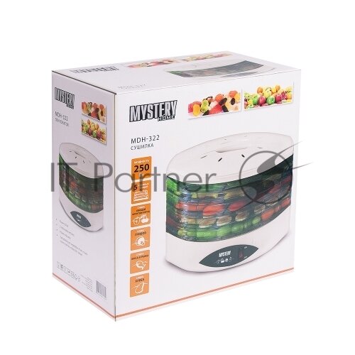 MYSTERY Сушилка для овощей и фруктов Mystery MDH-322, 250 Вт, 5 ярусов, белая