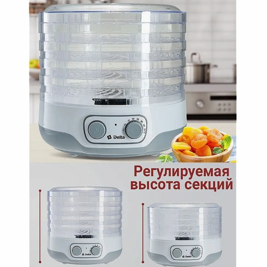 Сушилка для овощей и фруктов DELTA DL-6890 белая с серым электрическая