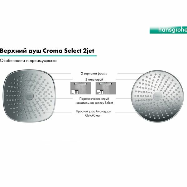 СохранитьВерхний душ hansgrohe Croma Select S 180 2jet 26522400, белый комбинированное интересное: