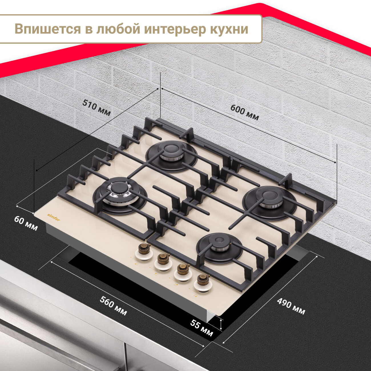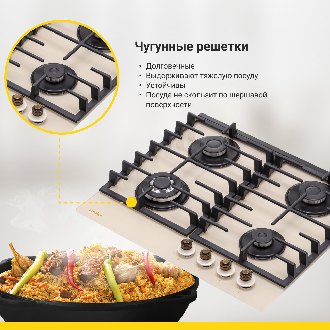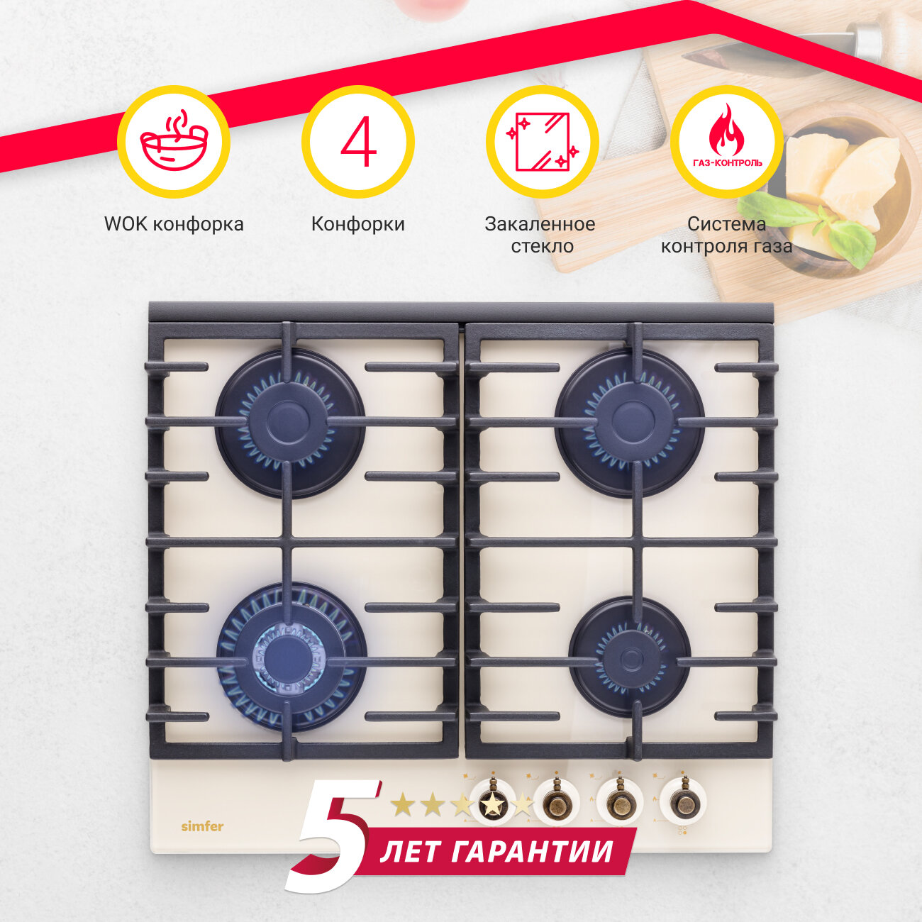 Встраиваемая газовая варочная панель Simfer H60H41O522 интересное:
