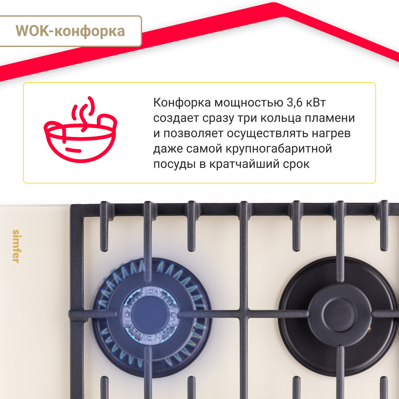 Газовая варочная поверхность Simfer H60H41O522 (газ контроль, WOK конфорка)