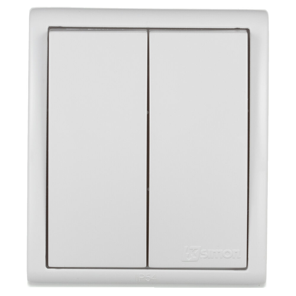 Купить Simon 15 Aqua Белый Выключатель 2-клавишный наружный, IP54, Simon, арт.1594398-030
