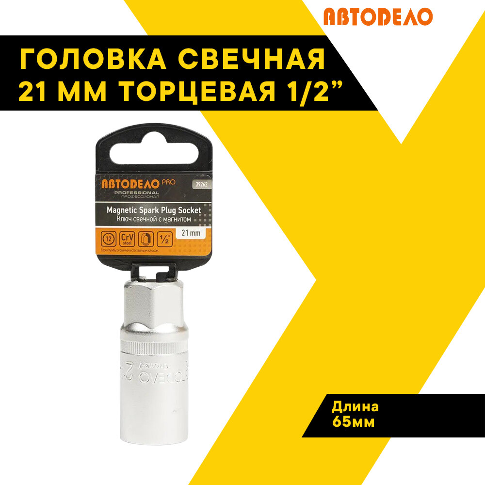 Головка торцевая свечная 21мм. 1/2" с магнитом Профессионал 39262 (АвтоDело) автодело