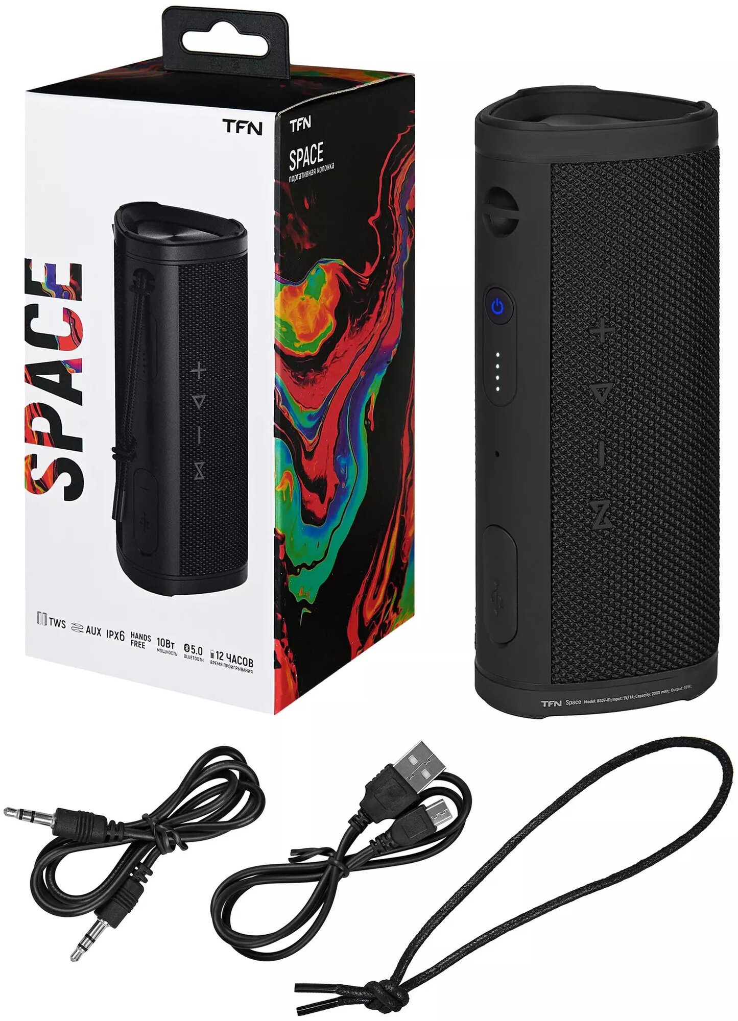 Портативная колонка Bluetooth TWS Space, c функцией подключения 2х колонок к одному устройству, черная (TFN, TFN-BS07-01BK) интересное: