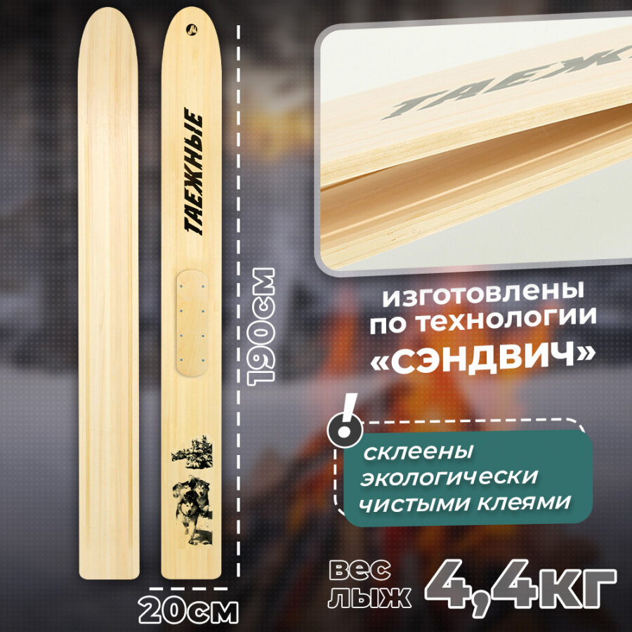 Охотничьи лыжи Маяк таежные 190х20 см, дерево + деревянные накладки / Промысловые для охоты, рыбалки, туризма