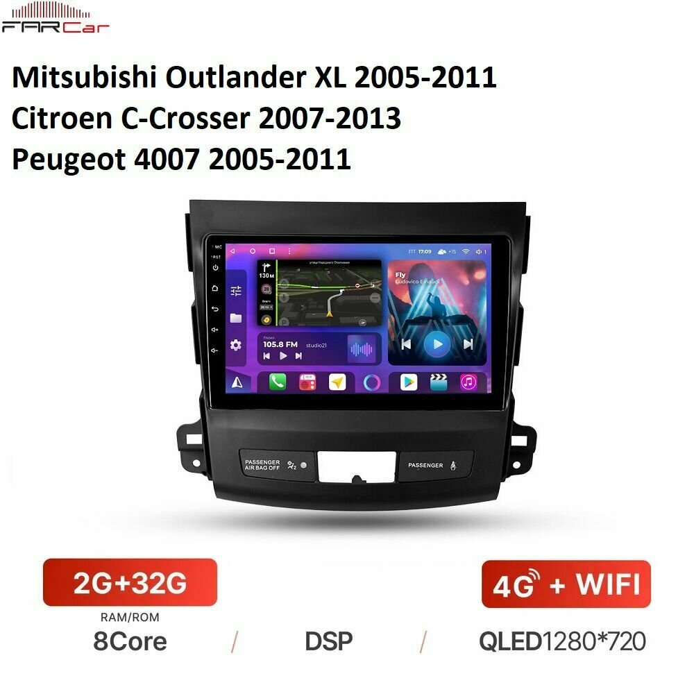 Штатная магнитола FarCar для Mitsubishi Outlander XL,Citroen C-Crosser, Peugeot 4007 на Android 10 (2gb/32gb/WiFi/BT/GPS/DSP/QLED/4G)