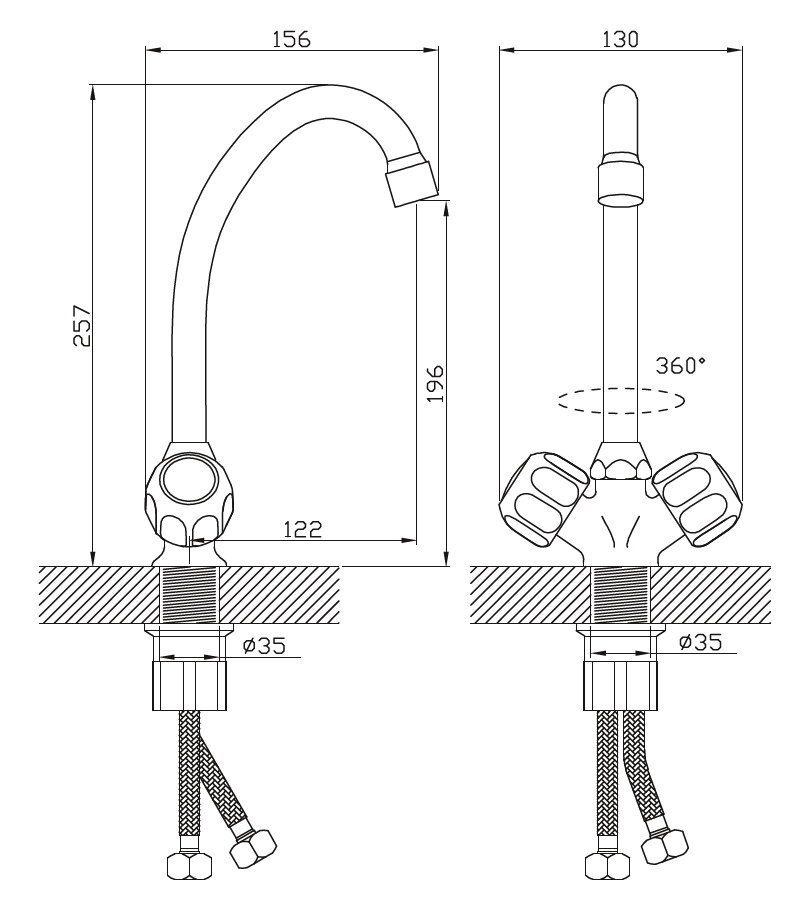 Смеситель для кухни Diadonna D80-746355 двуручковый с высоким изливом, кран-буксы 1/2", хром, крепление гайка интересное: