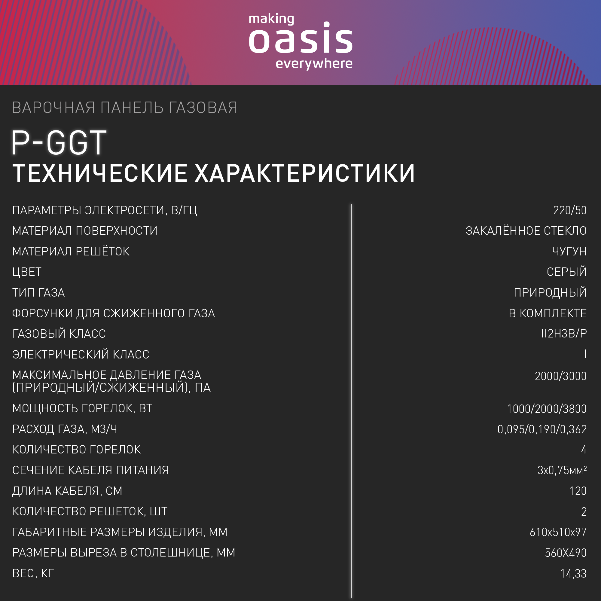 поверхность газ oasis p-ggt /серый, стеклокерамика/