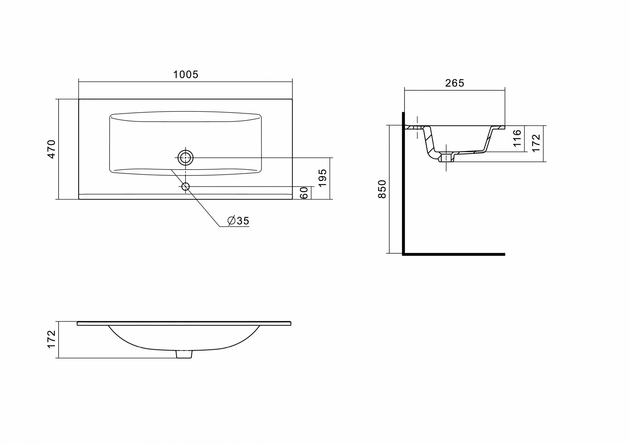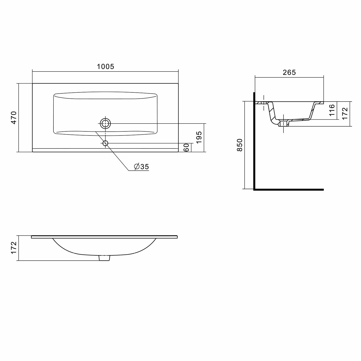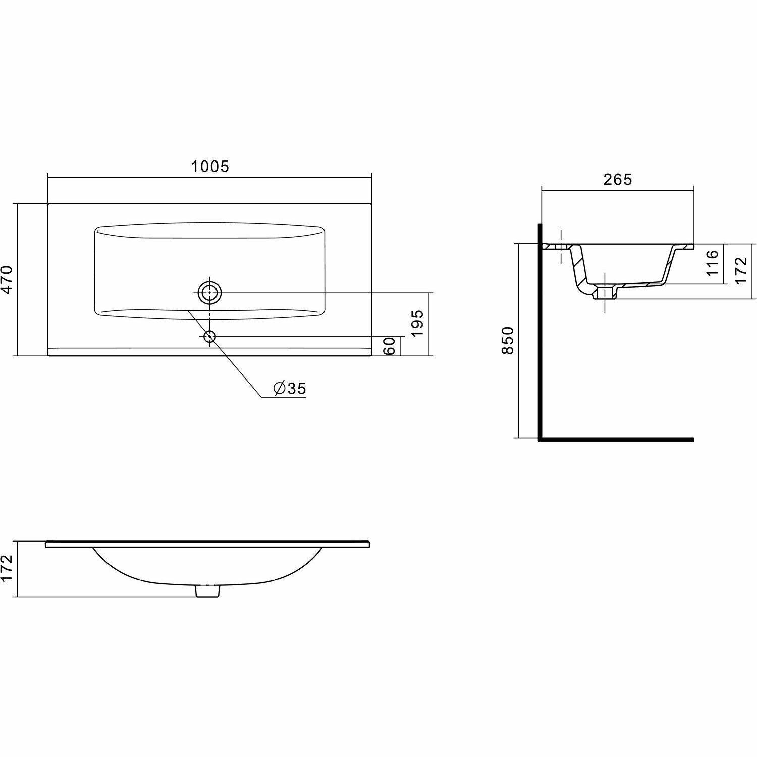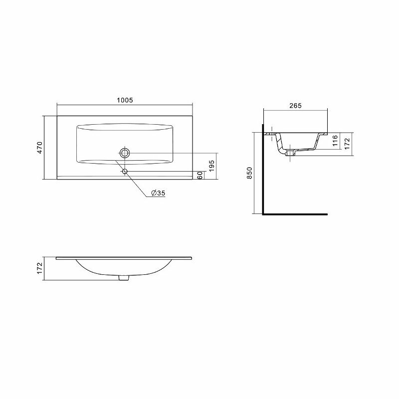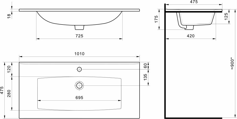 Раковина мебельная AQUATON Элина 100.5х47х17.2, фарфор, цвет Белый 1WH501627
