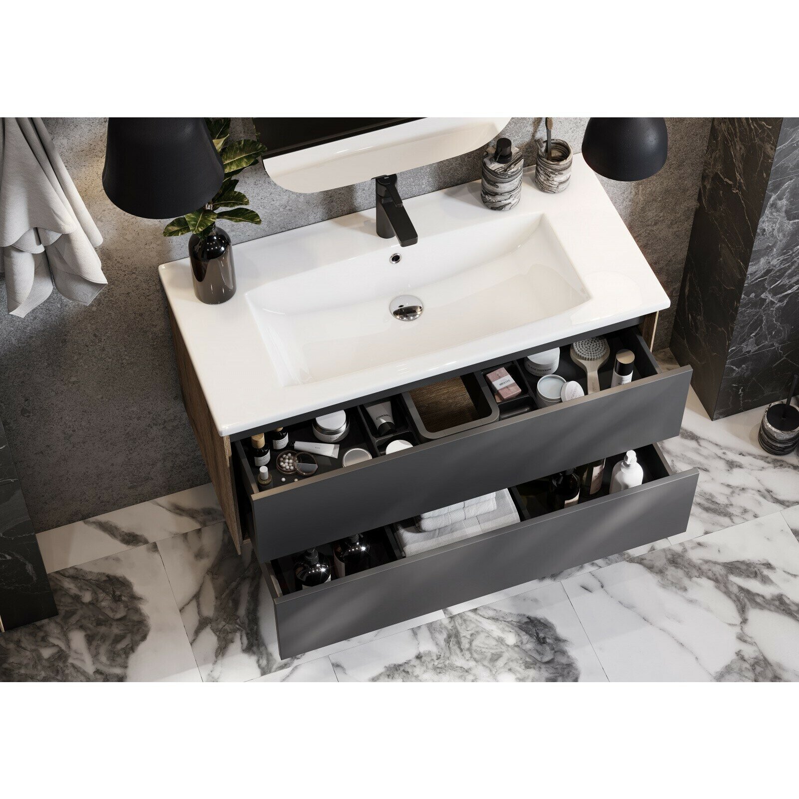 Набор Акватон 1A258201AJA00 Тумба-умывальник Сохо 100 дуб веллингтон/ 1WH501627 Раковина Элина 100 .