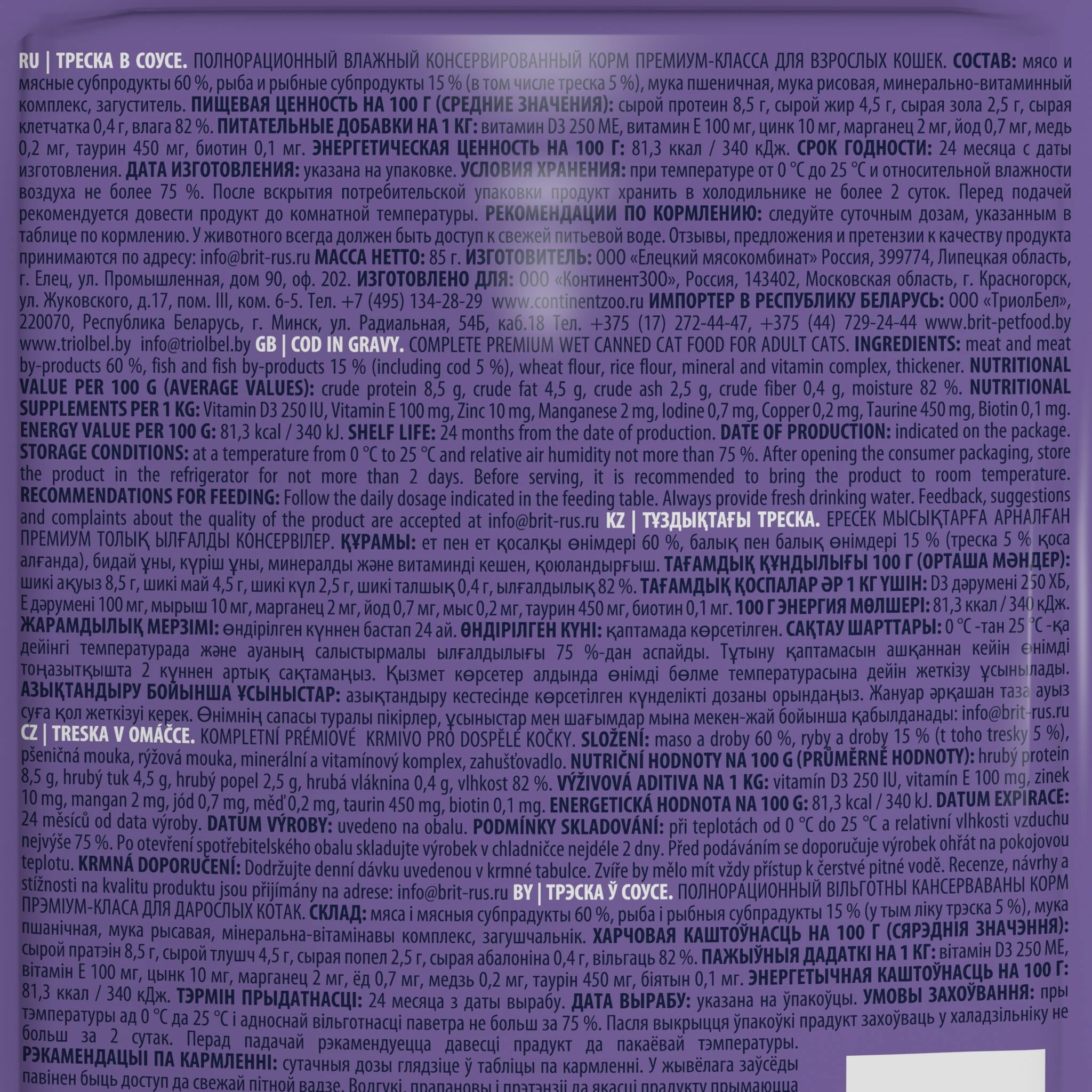 СохранитьBrit Premium пауч для кошек (кусочки в соусе) Треска, 85 г. упаковка 14 шт интересное: