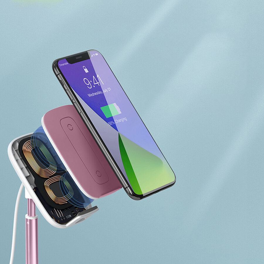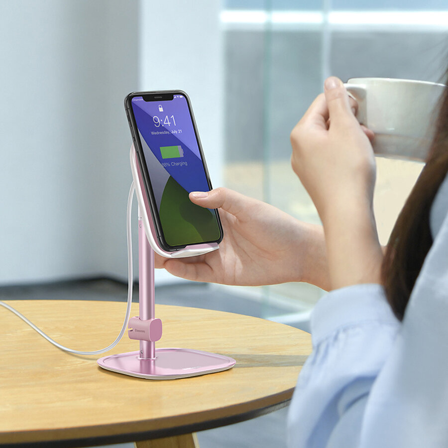 Купить Настольная подставка BASEUS Literary Youth Desktop Bracket, розовое золото, с беспроводной зарядкой