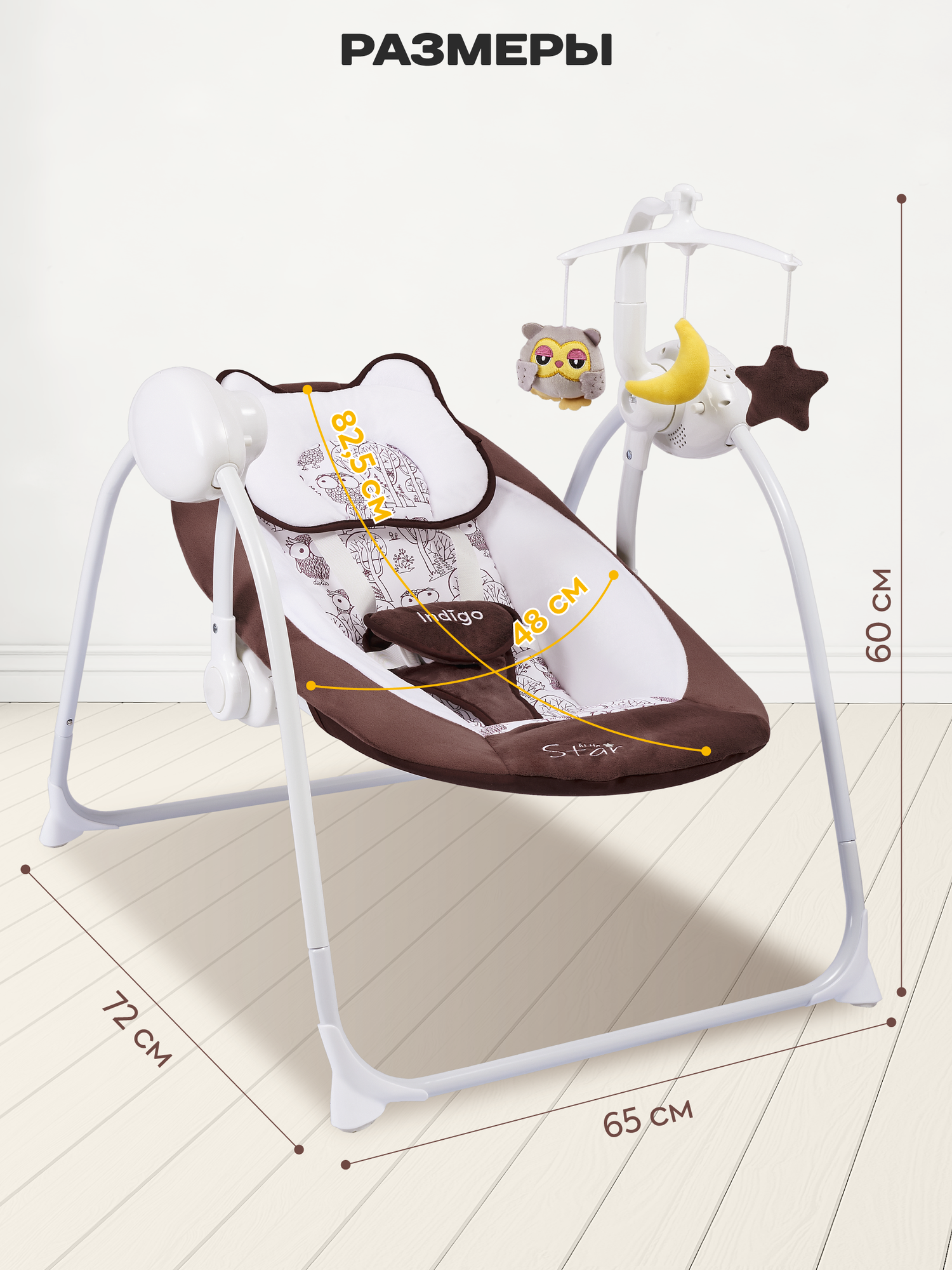 Электрокачели Indigo STAR с мобилем и пультом, коричневый