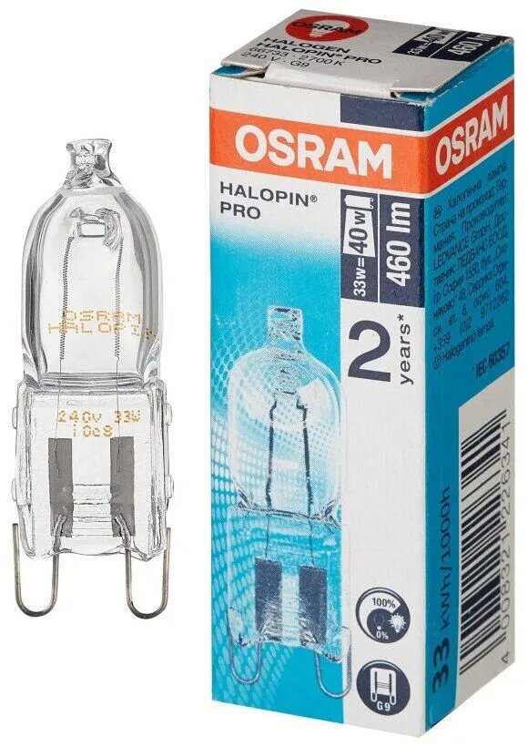 66733 HALOPIN PRO 33 W 230 V G9 лампочка галогенная капсульная OSRAM 2 штуки в комплекте