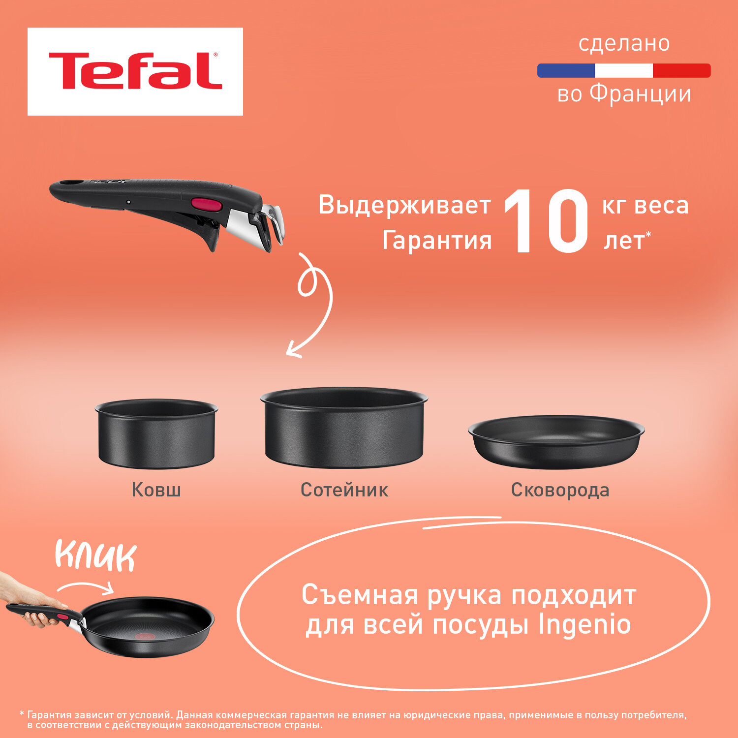 Купить Набор посуды со съемной ручкой Tefal Ingenio Daily Chef Black L L7629142, 10 предметов, подходит для индукции, сделан во Франции