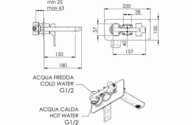 Смеситель для раковины Remer Infinity I15, встраиваемый, однорычажный, хром