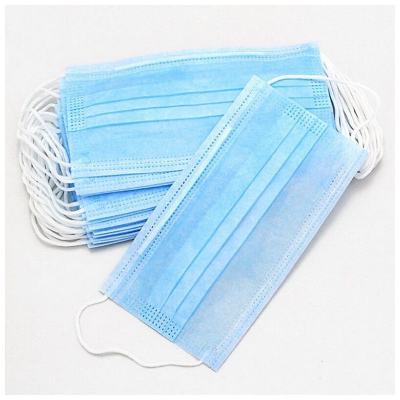 Маска медицинская 3-х слойная голубая, 50 штук в упаковке.