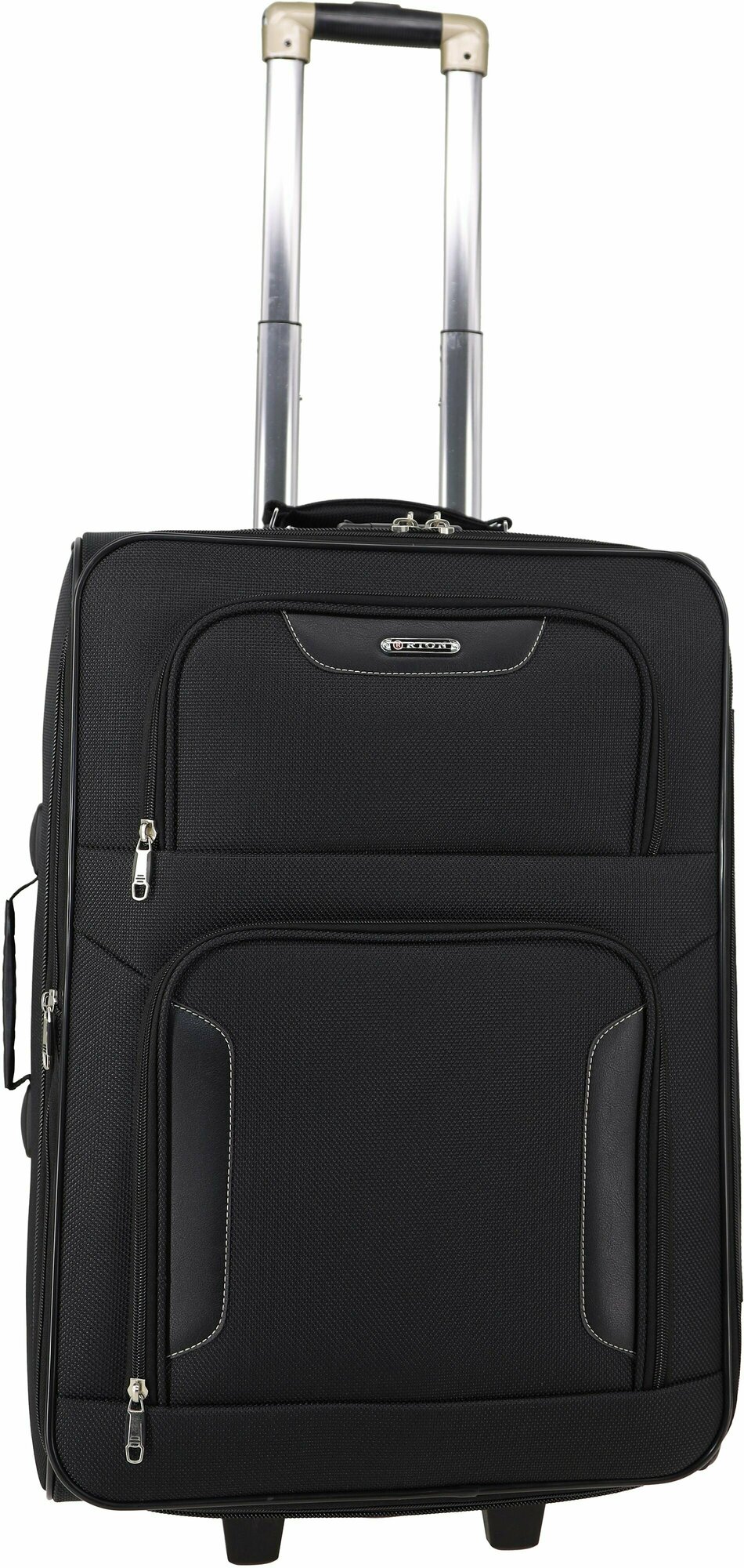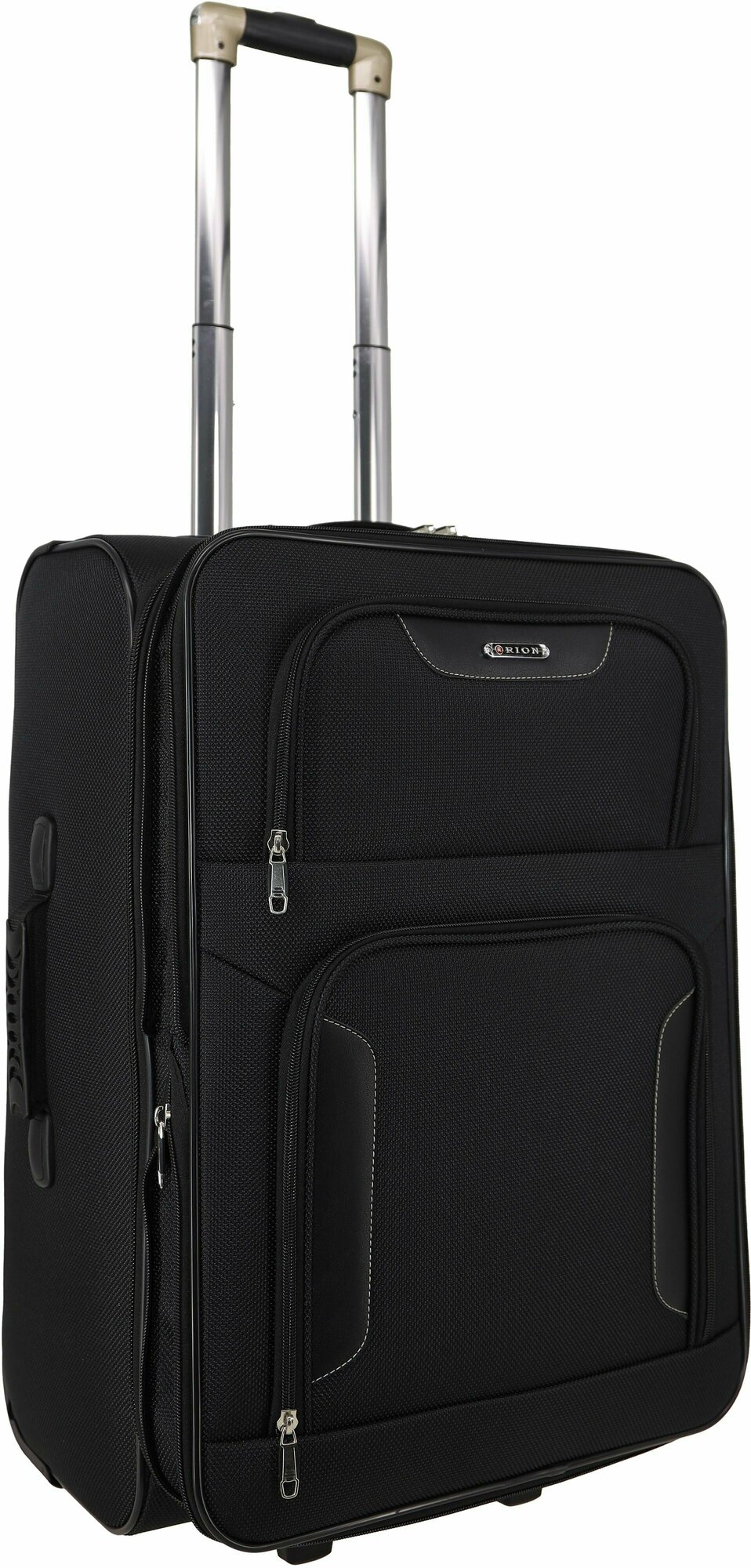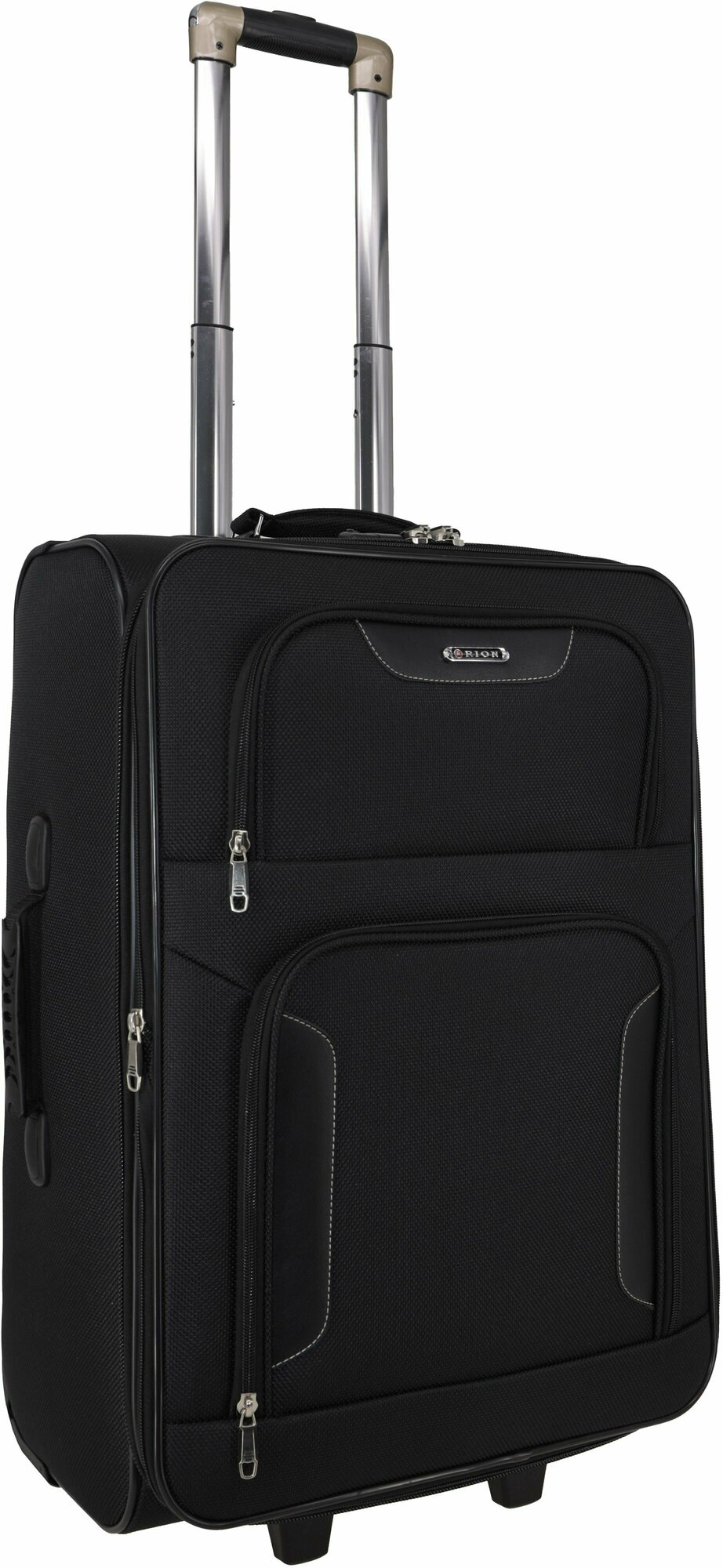 Чемодан Рион+ (RION+) R401, Ткань, 61 см 67 литра 2 колеса, M (56-70 см), трансформер, усиленный до 25кг, черный