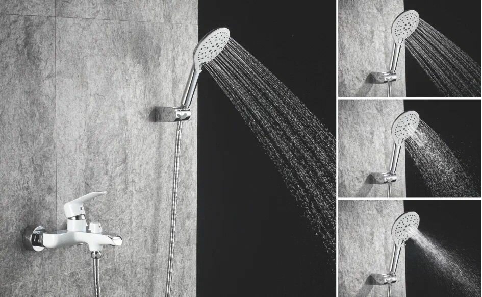 Смеситель для ванны однорычажный с душевой лейкой Rose R2102F, Белый/Хром интересное: