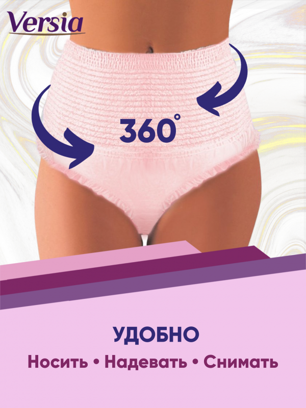 Трусы-подгузники для взрослых Versia Medium, 15х15х13 см, 7 шт, розовый, светло-розовый