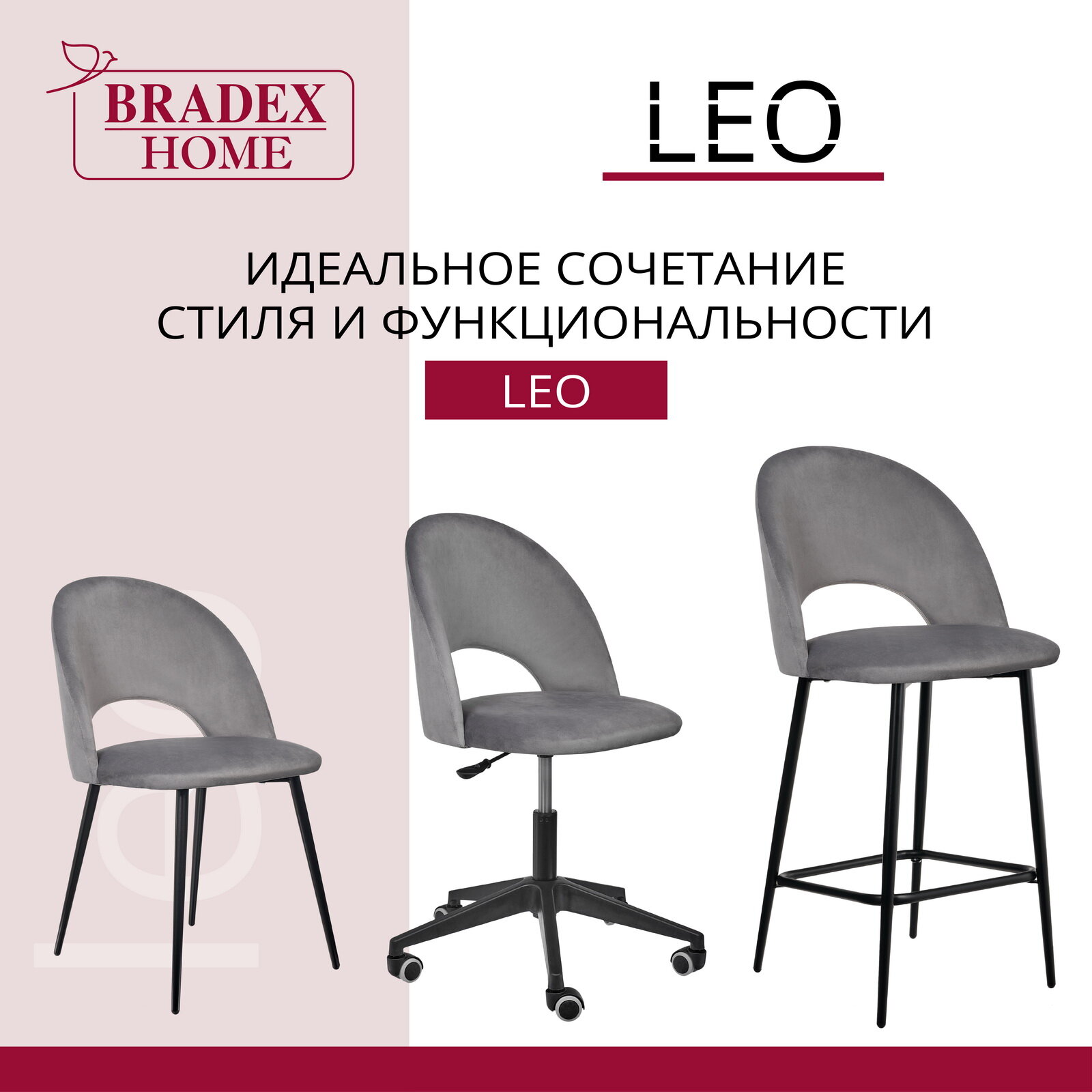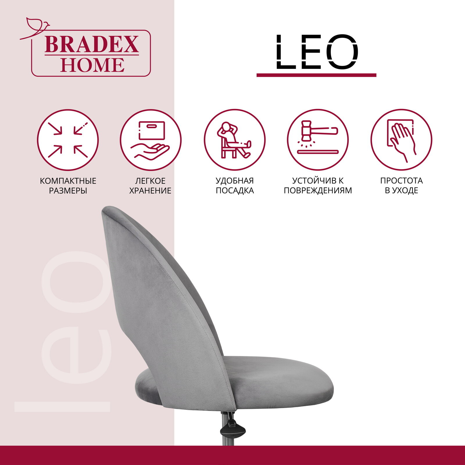 Стул Bradex Leo вращающийся на колесиках темно-серый (RF 0050)