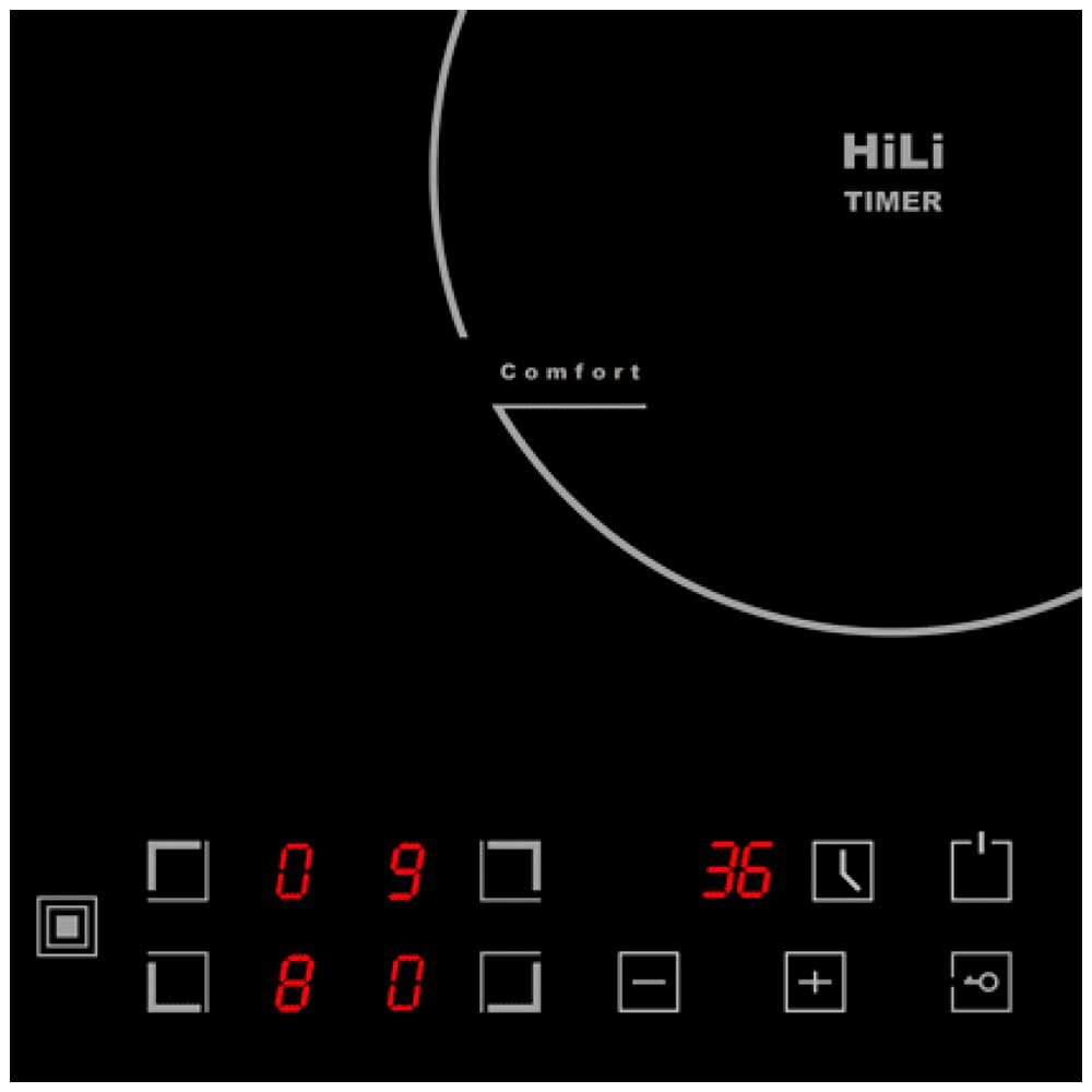 | Безопасность | защитное отключение конфорок / кнопка блокировки панели / индикатор остаточного тепла |