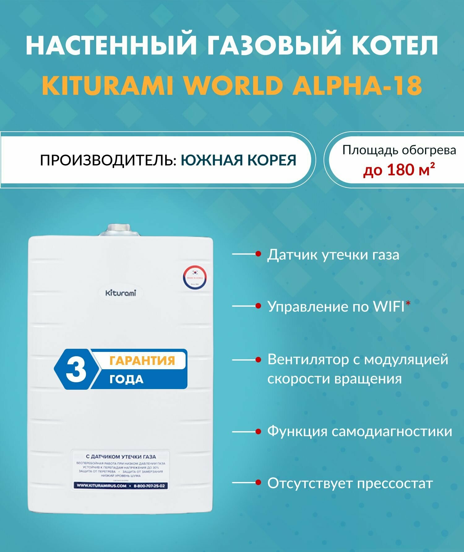 Настенный газовый двухконтурный котел Kiturami World Alpha-18 Сдатчиком утечки газа!