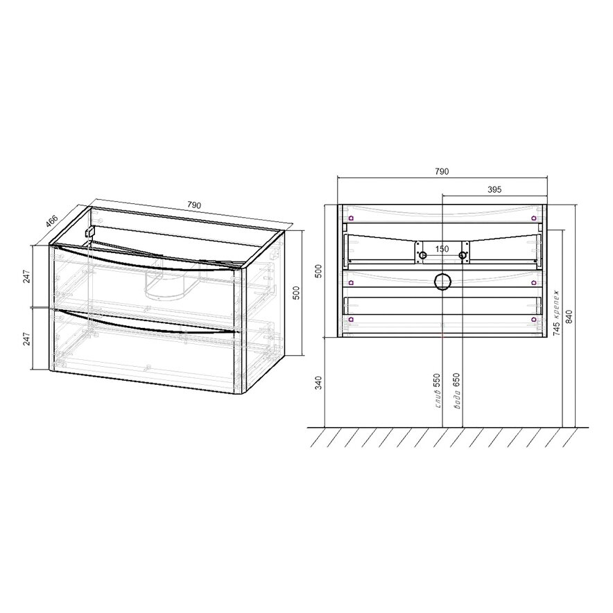 Тумба под керамическую раковину Vincea Mia 80 подвесная, 2 выкатных ящика soft close