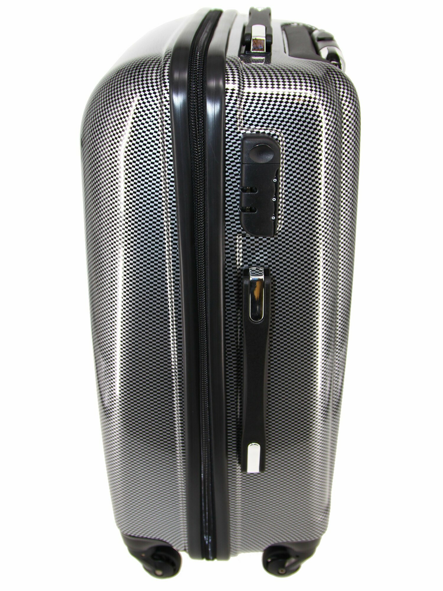 Чемодан Рион+ (RION+) R418, Пластик, L (70 см), 78 литра, 4 колеса, усиленный пластик, черный глянцевый