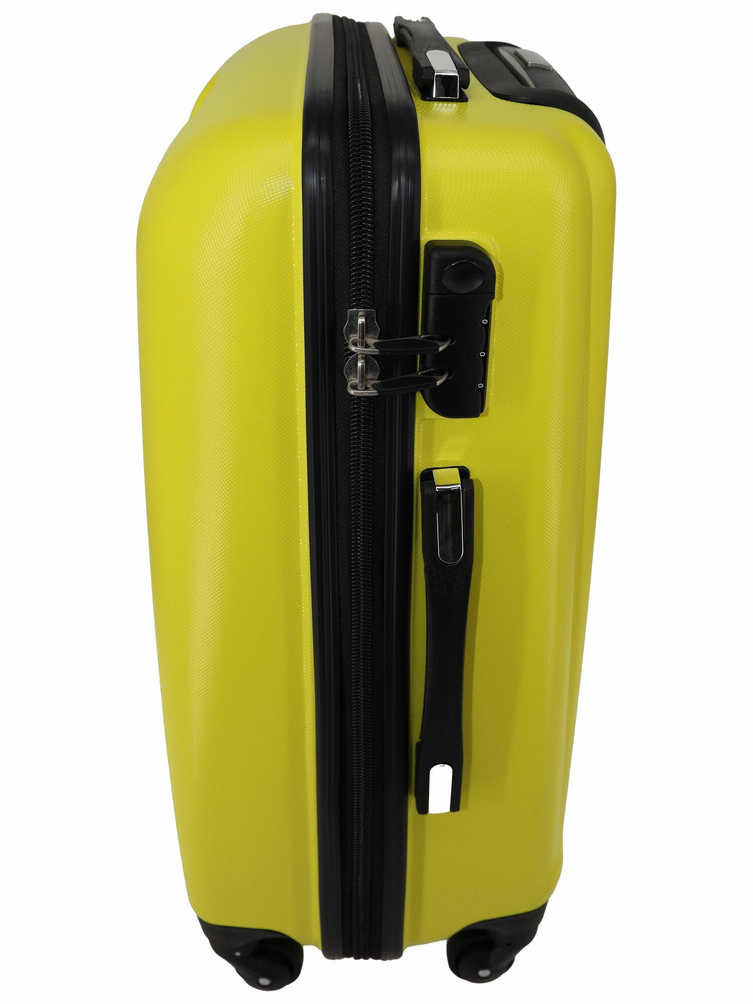 Купить Чемодан Рион+ (RION+) R416, Пластик, 65 см, 60 литров, 4 колеса, M (56-70 см), усиленный толстый пластик, желтый