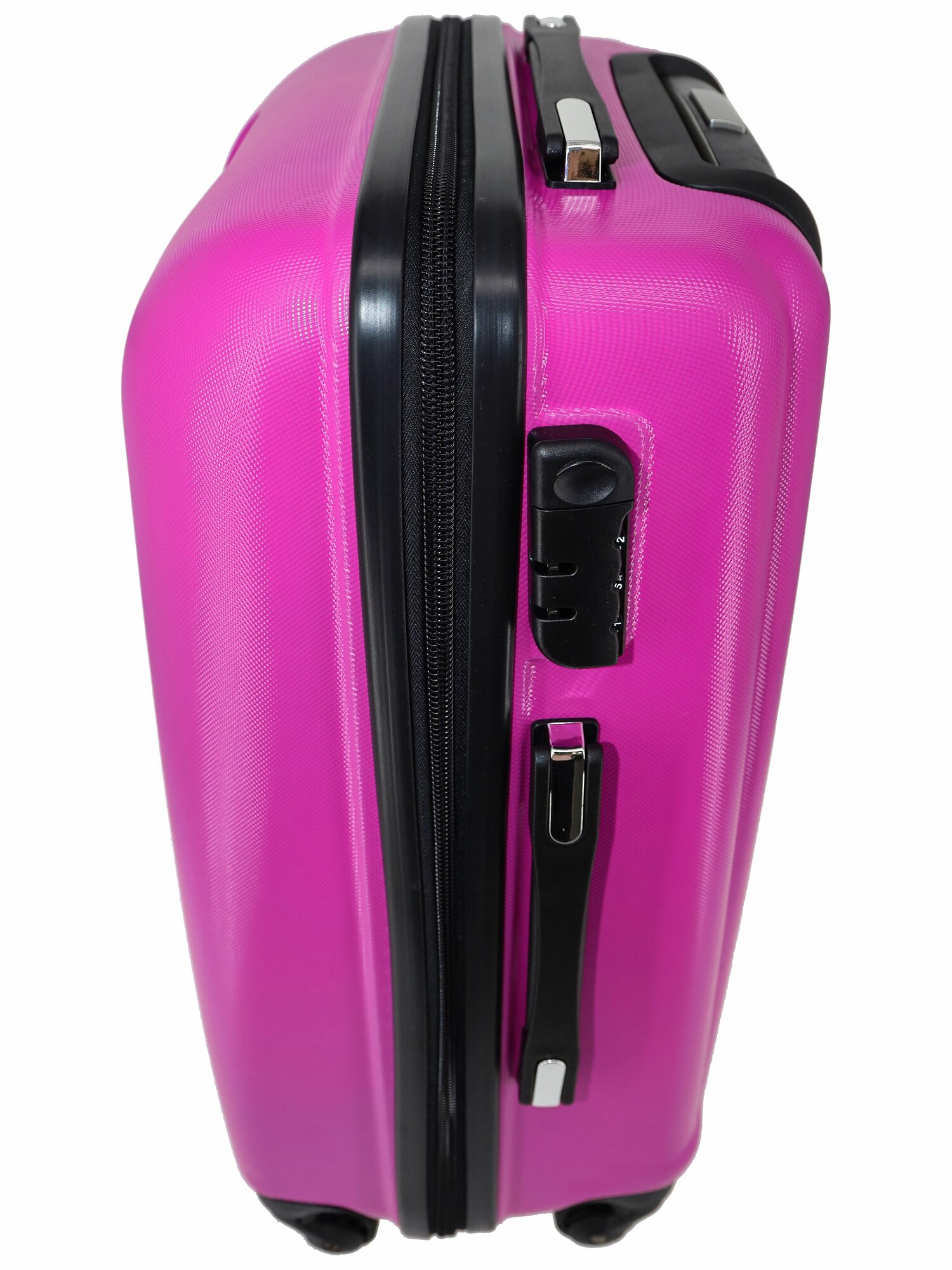 Чемодан Рион+ (RION+) R418, Пластик, L (70 см), 78 литра, 4 колеса, усиленный пластик, черный глянцевый