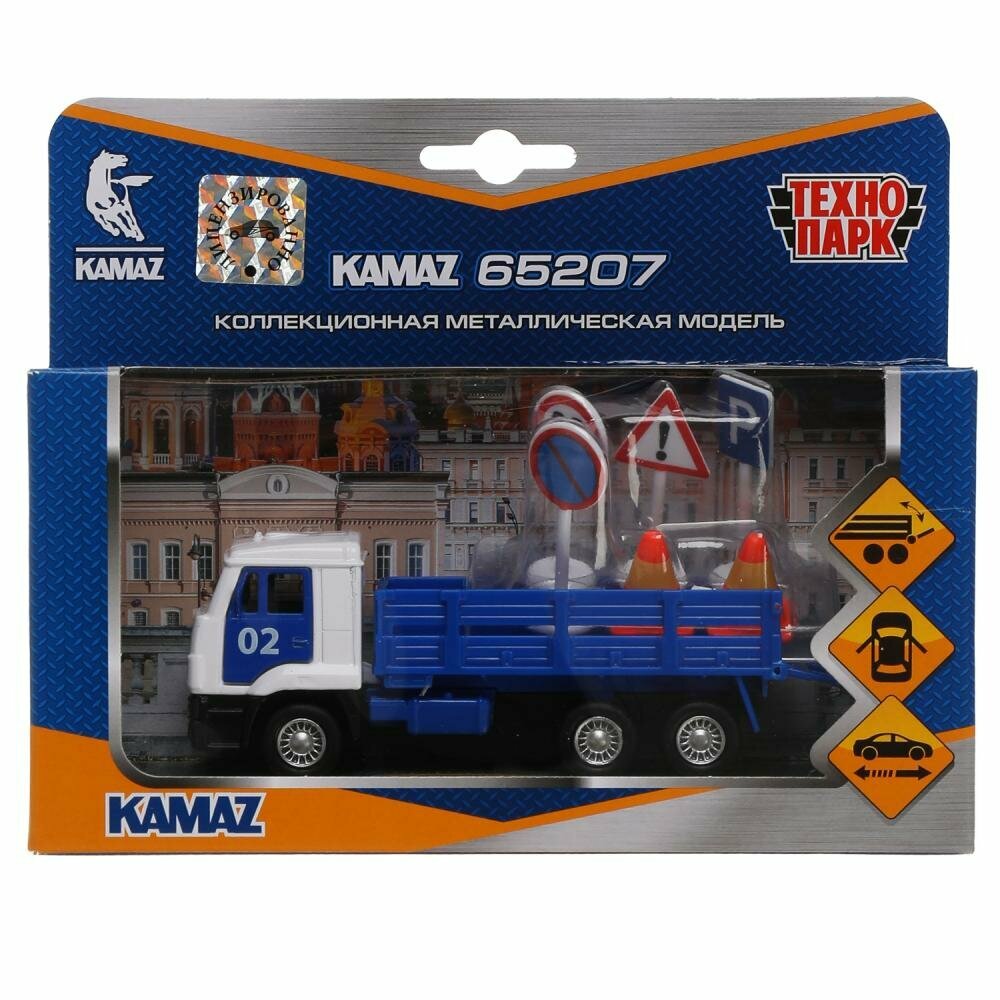 Купить Машина металл KAMAZ , 12 см, дв., багажник, инерционная+дорожый знак