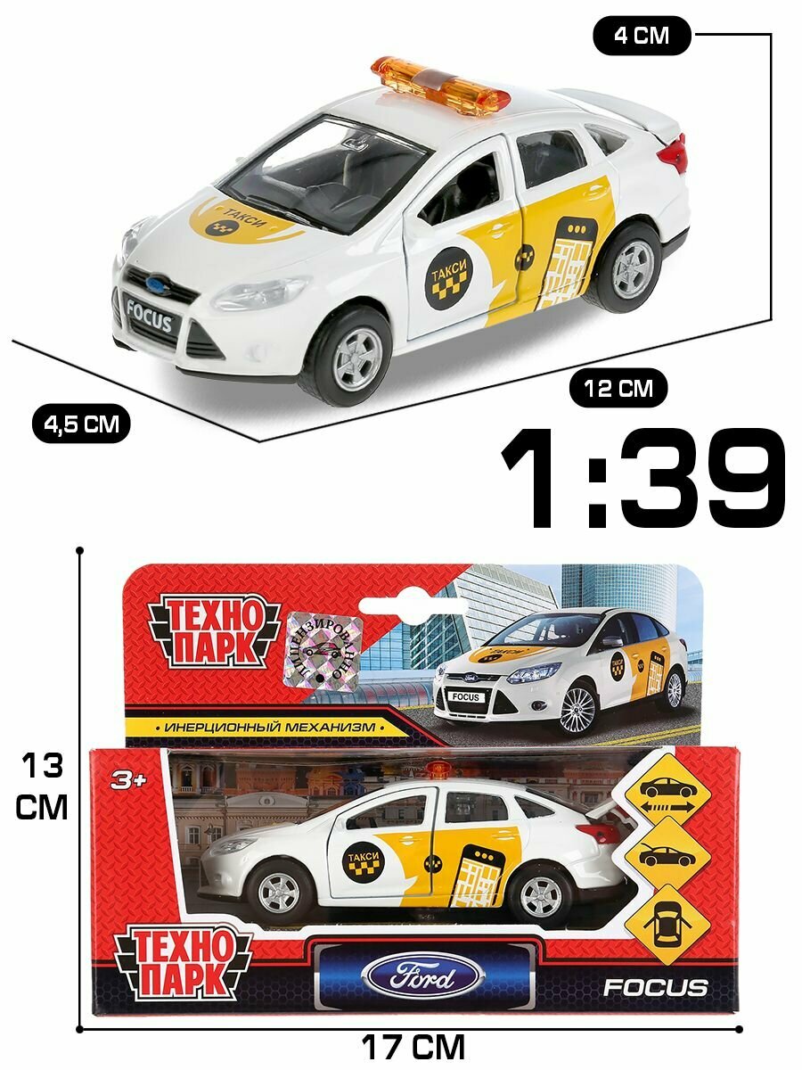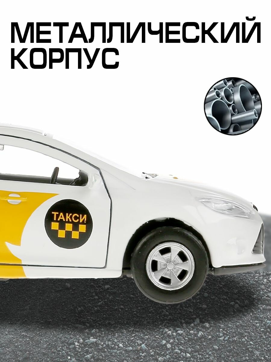 Машина Ford Focus Такси 12 см белая металл инерция Технопарк, SB-16-45-T2-WB