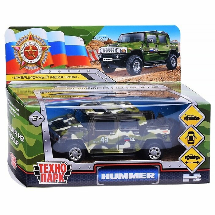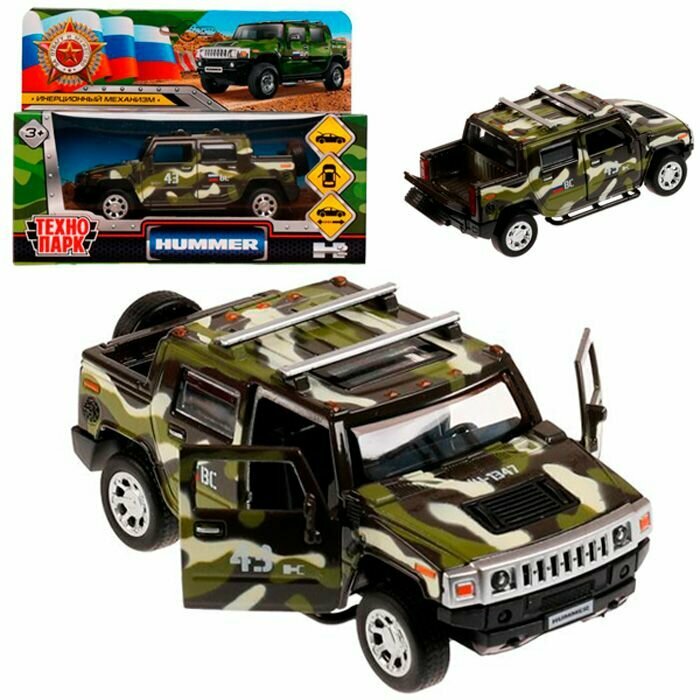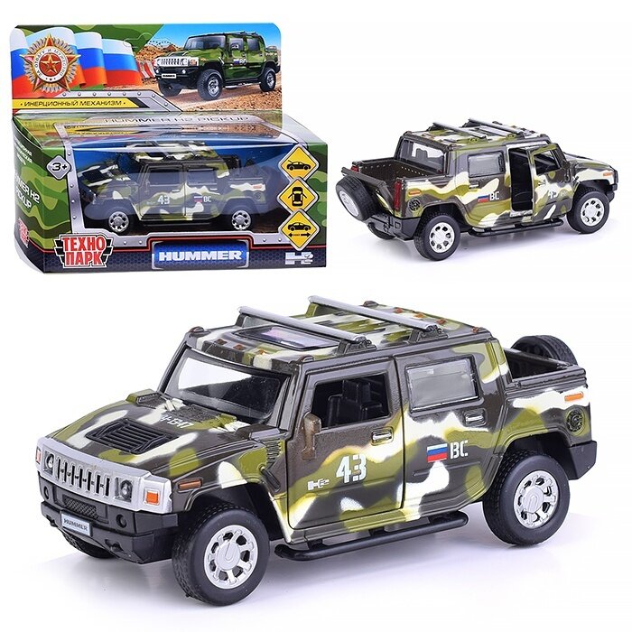 Машинка металлическая Технопарк HUMMER H2 пикап камуфляж 12см HUM2PICKUP-12MIL-GN