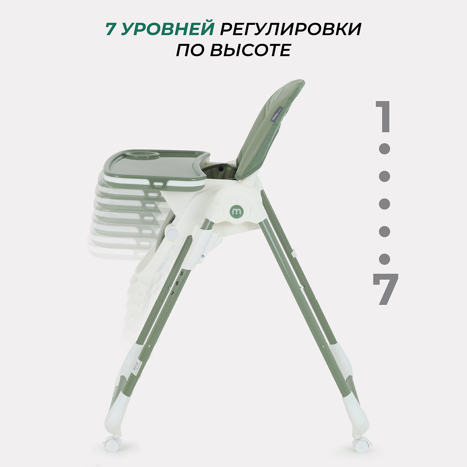 | Регулировка | высоты стульчика / наклона спинки / положения подножки / положения столика |