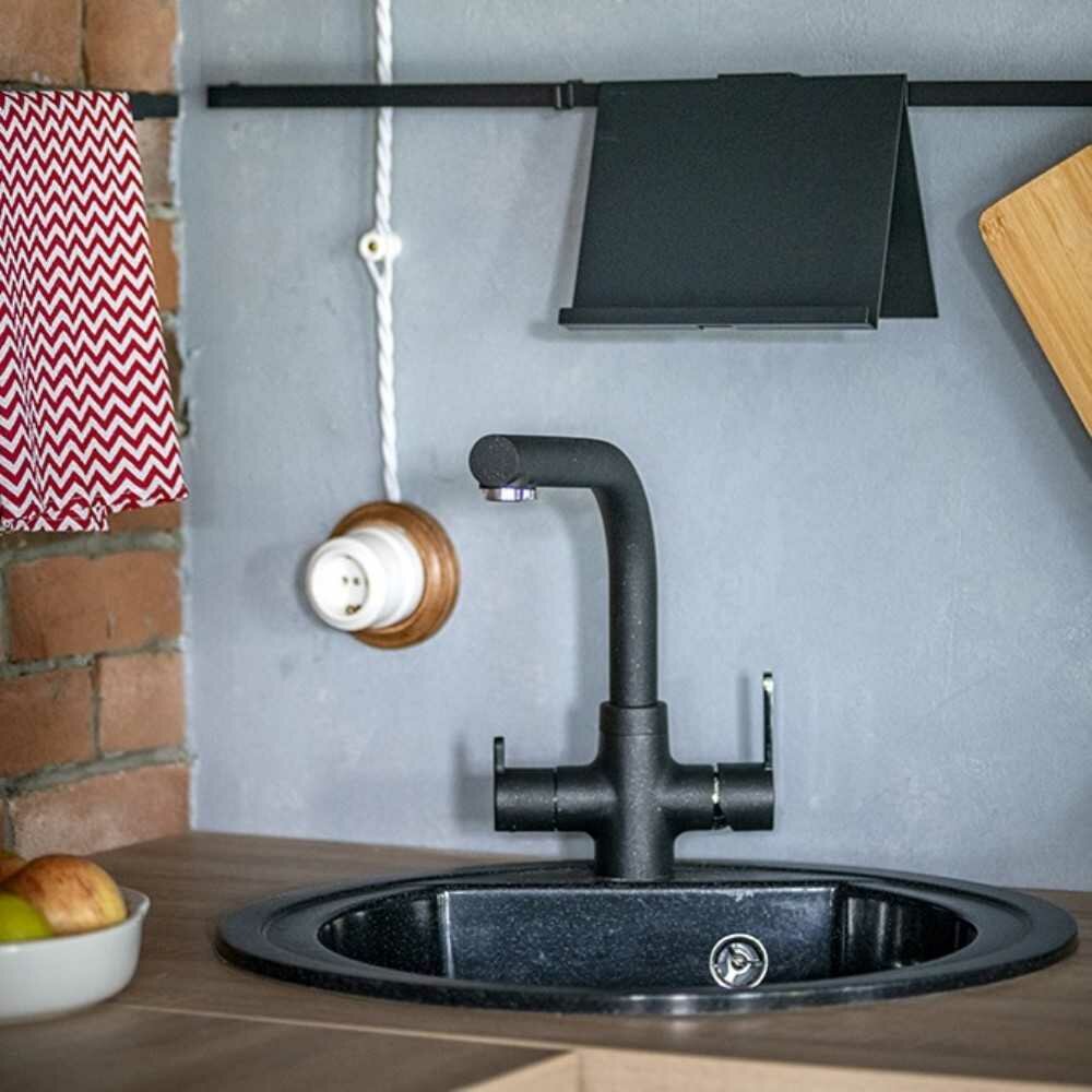 СохранитьСмеситель для кухни Paini Arena с переключением на фильтр 29.3 см цвет чёрный интересное: